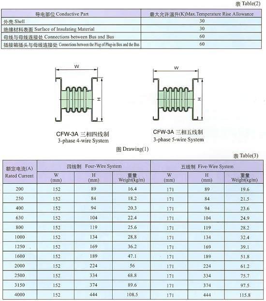 CFW-3A 高强封闭母线专供交流三相四线,三相五线制、频率50v~60Hz,额定电压至660V,额定工作电流200~4000A的供配电系统传输电能之用。